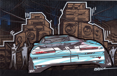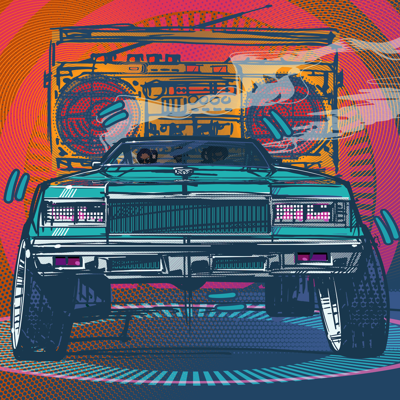 Original artwork exploring the intersection of Detroit’s cars, culture, and music.